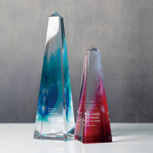 透明なクリスタルトロフィーにブルーの波みたいな模様が入っててすっごく綺麗🩷
